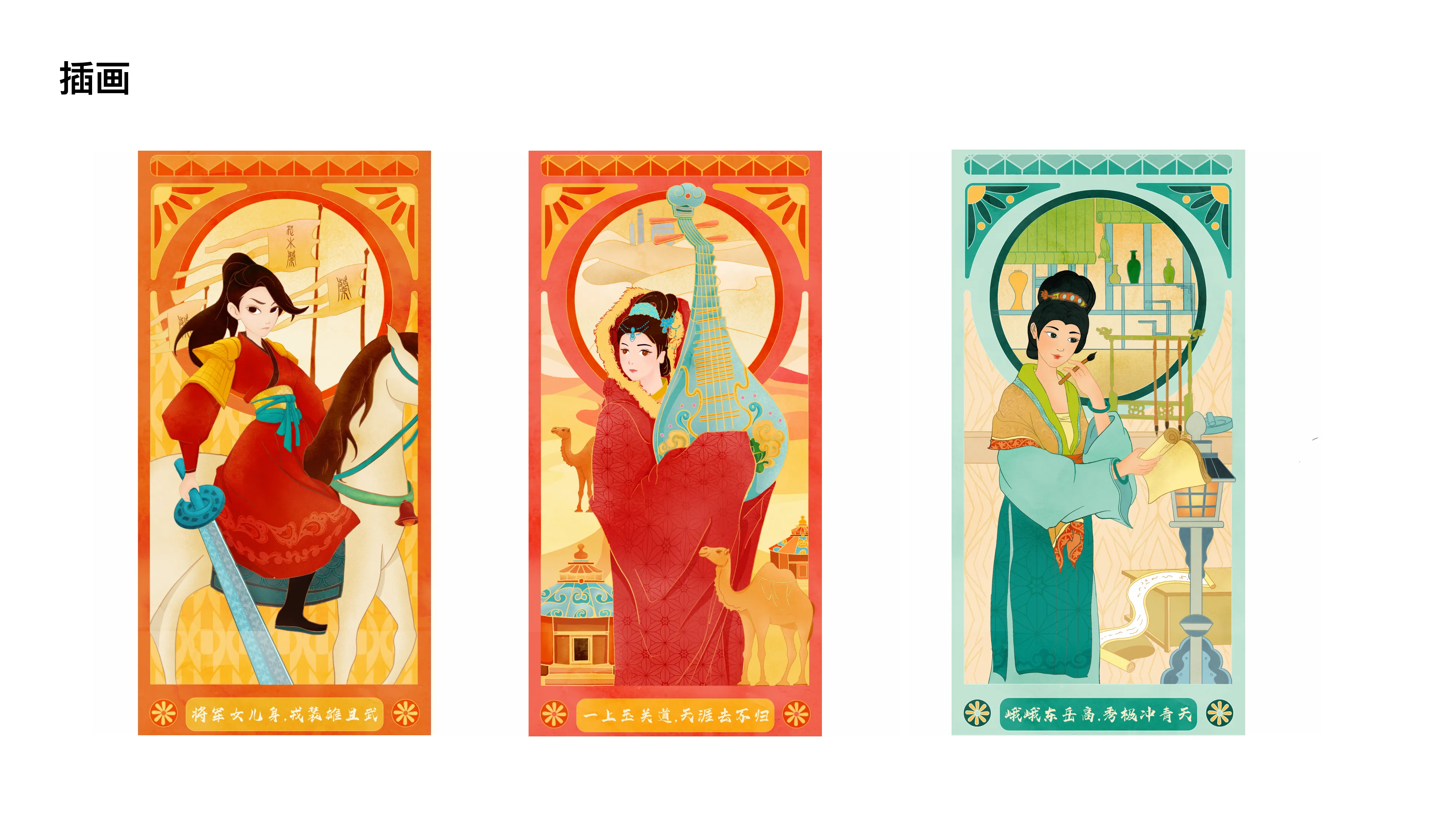瑞幸咖啡与中国国家话剧院的联名活动“女神的精神角落”。以国潮插画风格重新演绎花木兰、王昭君等经典女性角色,应用于咖啡杯套、纸袋及周边产品。