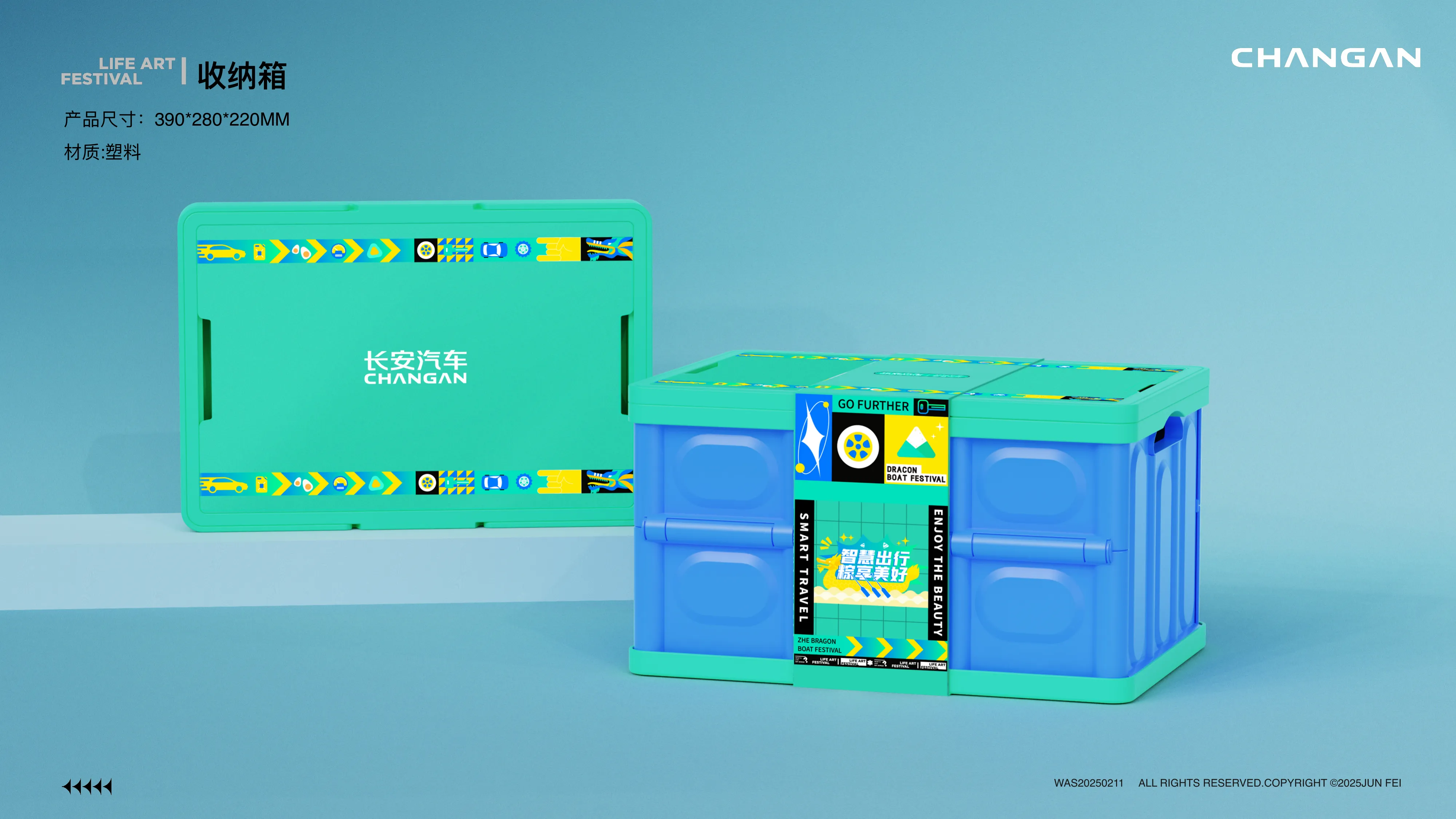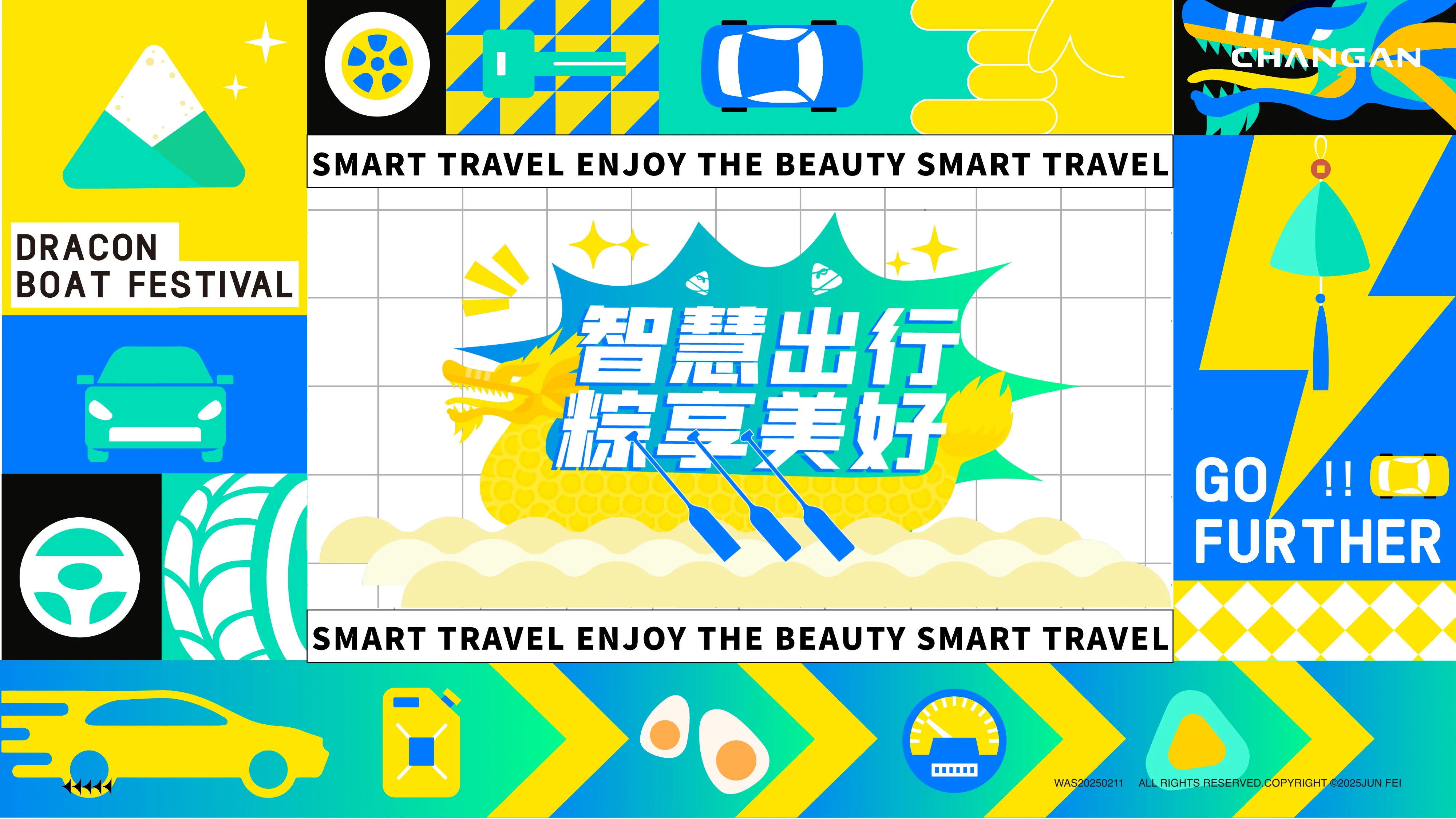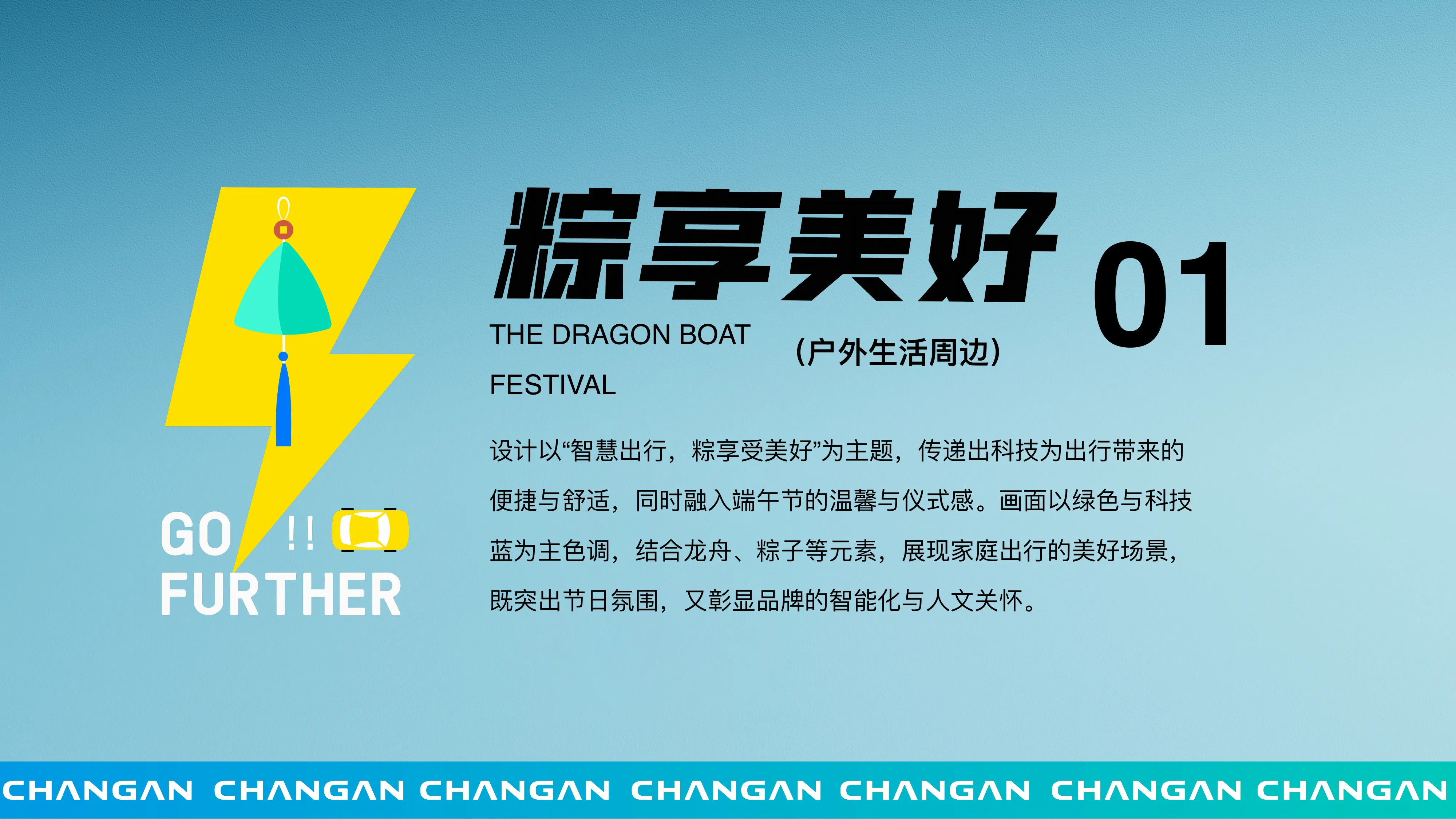 长安汽车希望在端午节期间,通过生活艺术节活动增强车主粘性。需要设计一套既符合节日氛围,又能体现“智慧出行”品牌理念的文创周边。